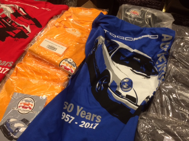 Saturday Morning, bright and early...It was time to lay out our display, including our new 60th Anniversary T-Shirts.