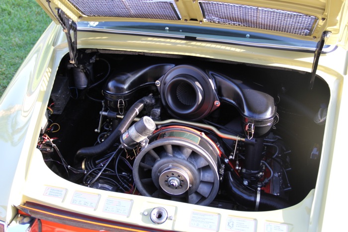 This very pretty early 911 had its engine on display.