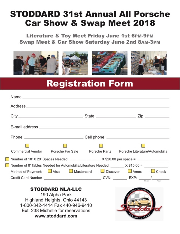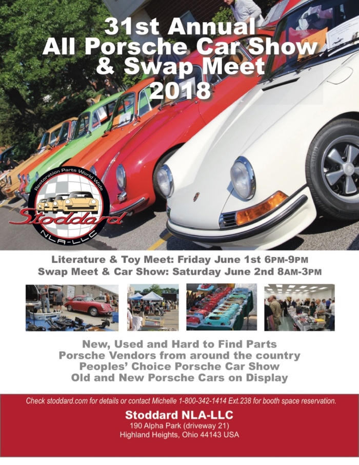 The 31st Annual Stoddard All-Porsche Car Show and Swap Meet is in a few short months—Friday, June 1st and Saturday, June 2nd. Vendor Spots are available and we expect another record crowd this year!