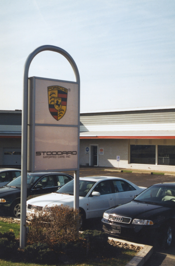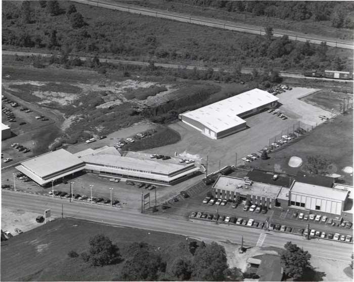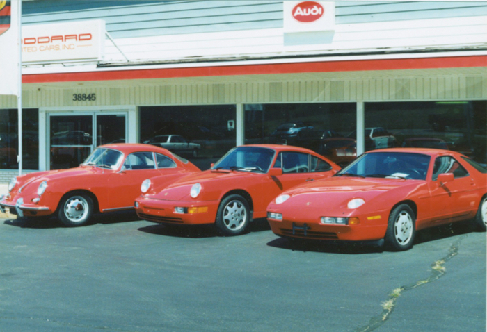 An aerial shot of the old Dealership. Get out your magnifying glass to spot the Porsches.
