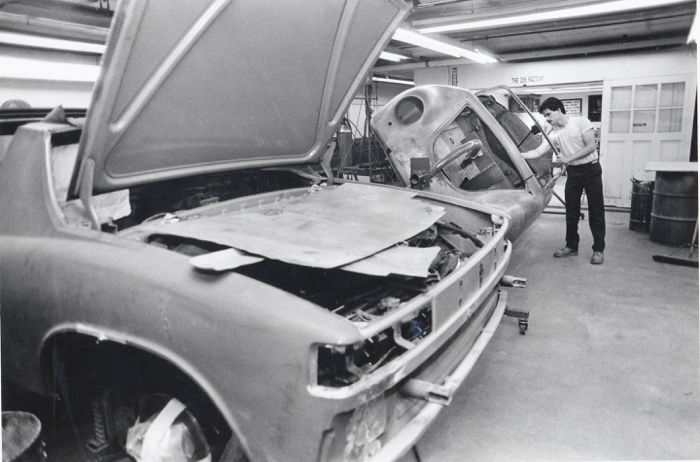 In the Service Department in the early 1970s. Rustproofing was done to the right near the Dyno cell.
