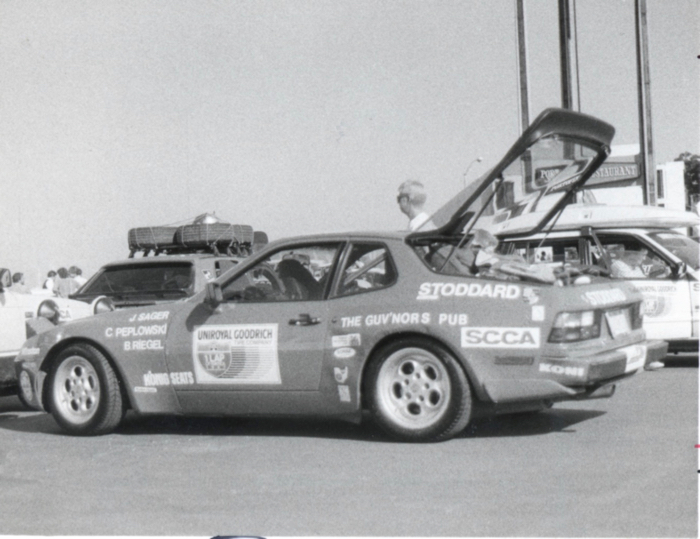 Jack Sager, Con Peplowski and Bob Regel (our Merchandising Wizard) ran the One Lap event in 1980s in this Stoddard-sponsored 944 Turbo.
