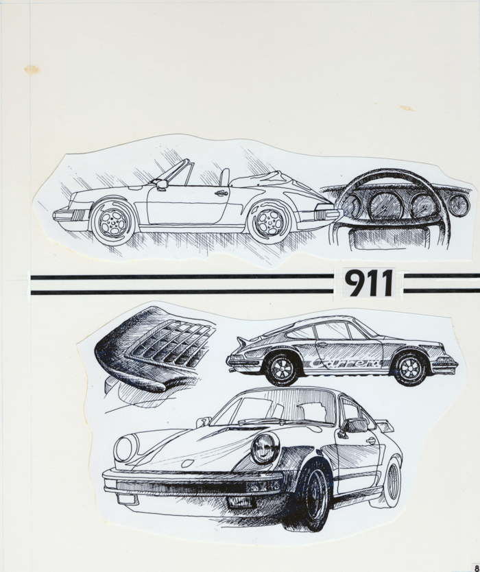 A lot of our earlier promotional materials featured hand-drawn Porsche artwork by Geoff Davies.