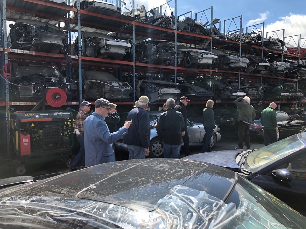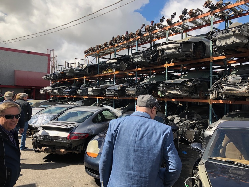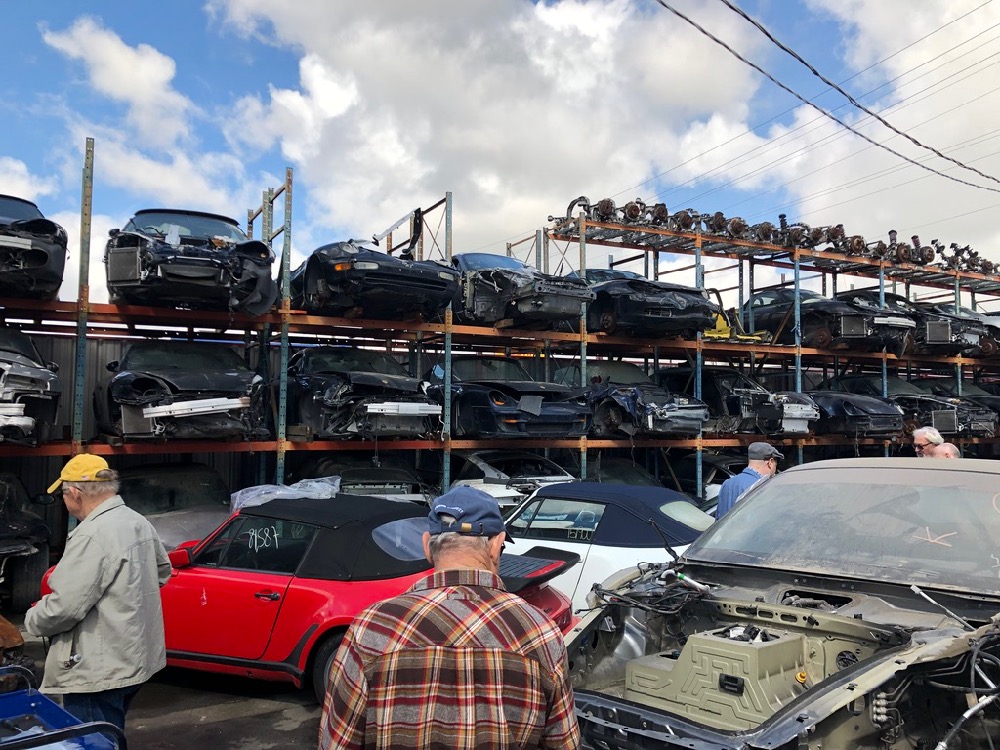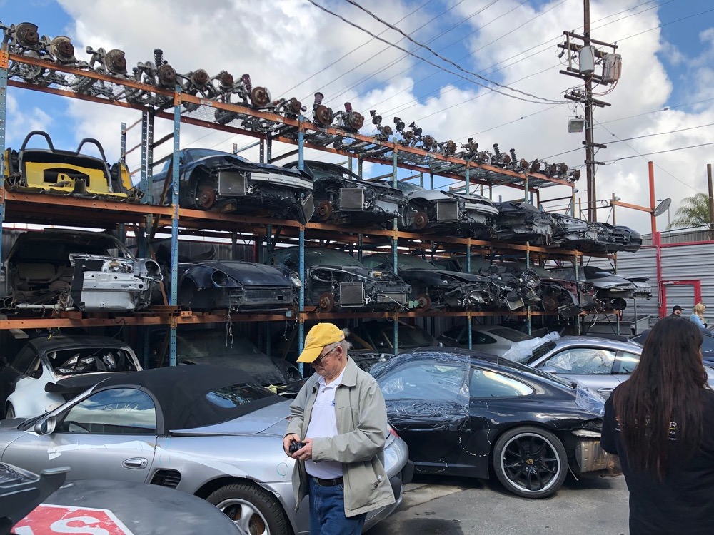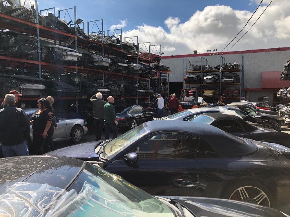 A stop at LA Dismantlers in Sun Valley was next on the itinerary. Here, we learned how the cars are brought in and parted out, or sometimes sold whole.  Their business is mostly in the later model cars, but we did see a handful of G-body 911s.