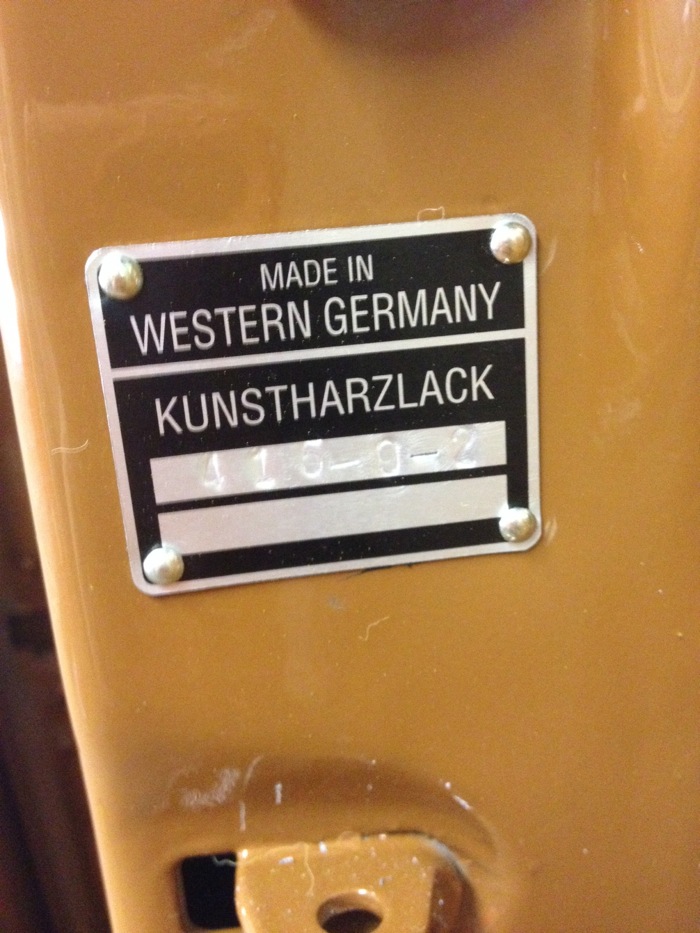And finally, a snappy new paint plate from Porsche Classic—stamped with the correct 415 paint code.