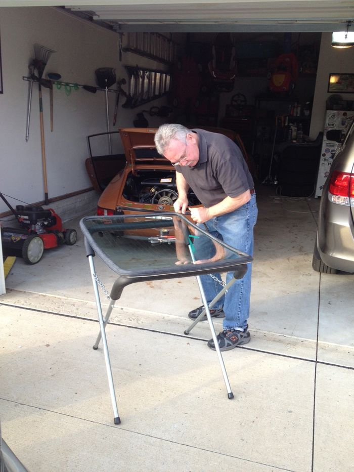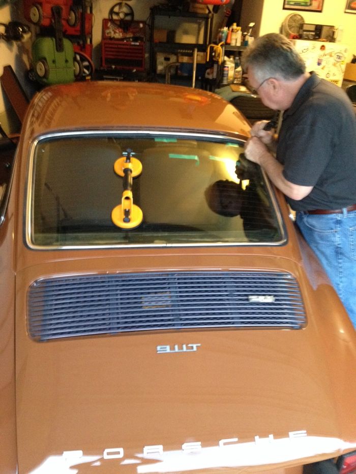Next up, we had to reinstall the rear window. We used the original glass and trim, but a new Porsche Factory seal.