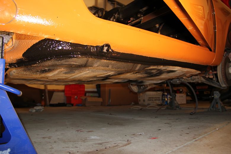 Next, we carefully painted the lower edges of the rocker panels to match the original look. We took pictures of these markings before we brought the car in for paint to use as a reference. We had those pictures to guide us as we went.