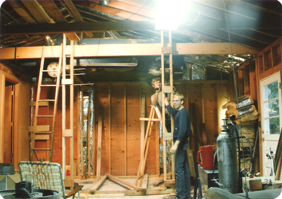 I joked with the half dozen friends who helped that I knew we didn't need that much help, but I wanted to make sure in case of a disaster there would be someone still unhurt to call 911! Credit to my Dad the engineer who dreamed up this Rube Goldberg.