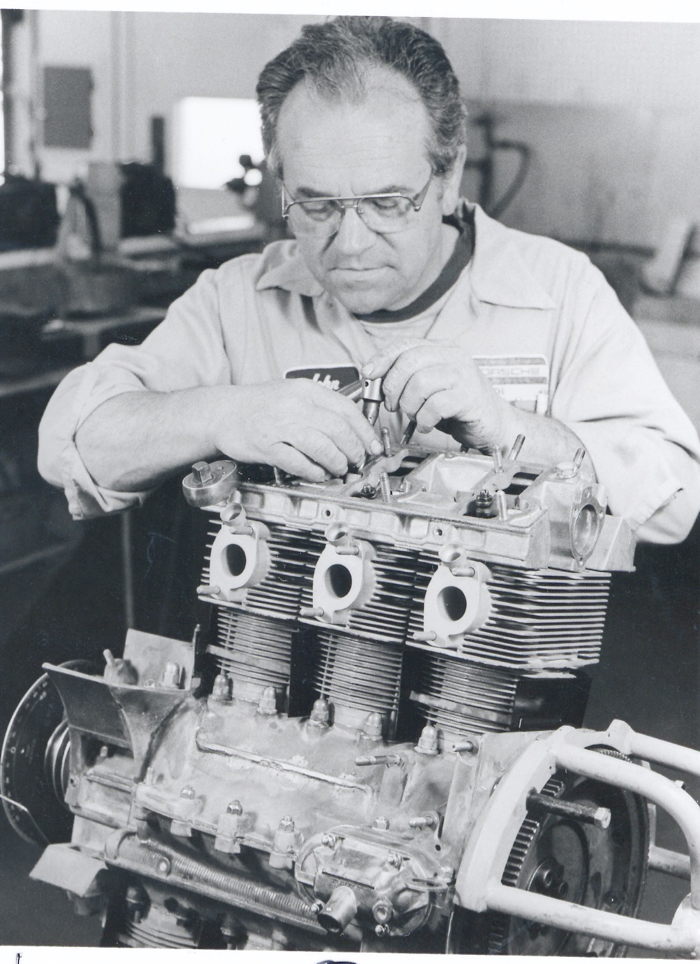 John Truman working on a 911 engine in the 1980s. John still handles our hinge and carburetor rebuild program.