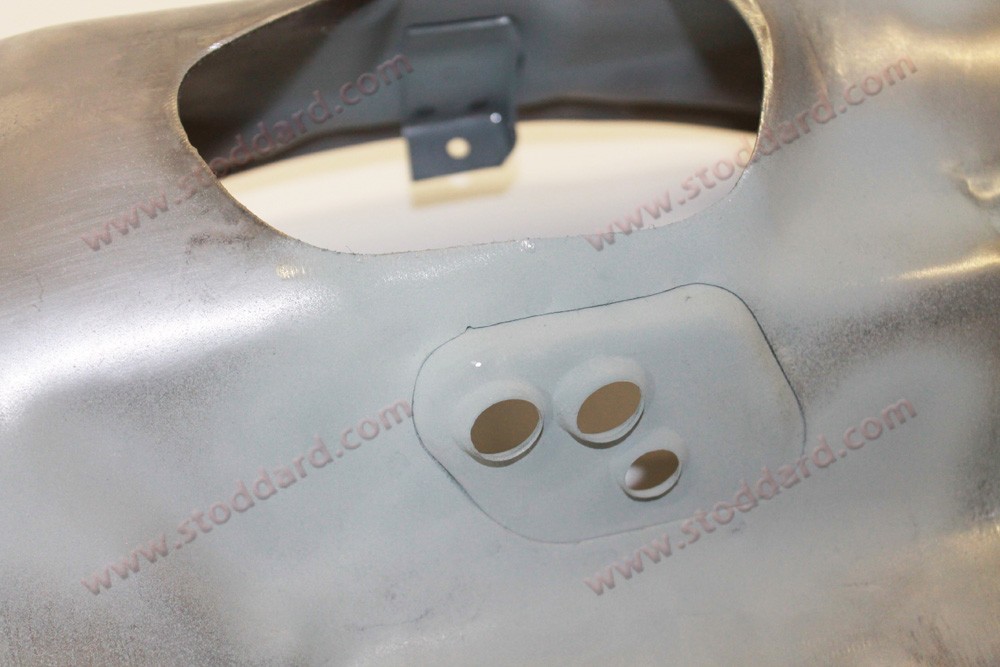 The hump panel is made by our sheetmetal fabricators out of Galvanneal, a galvanized steel that is highly corrosion resistant, yet still welds easily. The panel includes all necessary brackets and even has the correctly placed holes for the fuel and brake lines that pass through the car's center tunnel.