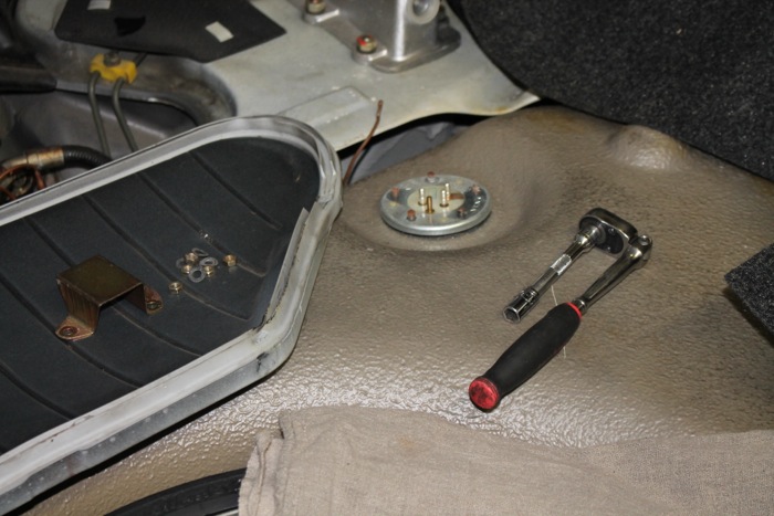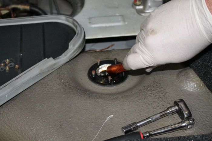 We'll start the project by removing the fuel level sender and checking out the contents of the gas tank.