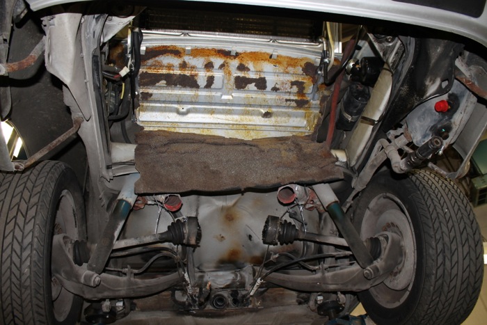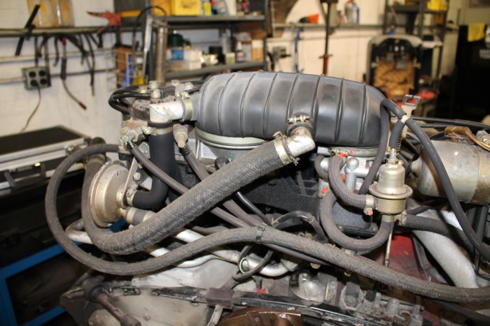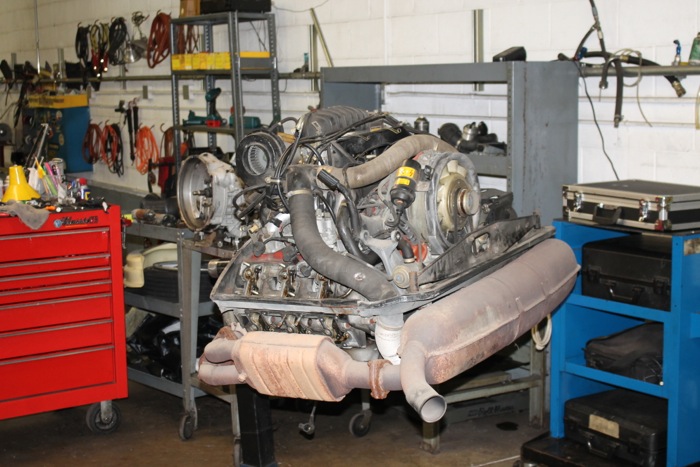 While the engine would turn over just fine and we knew that we would have to remove the engine to really check everything out. The time to remove an engine is more than offset by the time saved when working on the fuel injection system, adjusting valves, etc. An added plus is that it's also a lot easier to replace the sagging sound damping mat above the engine when there's no engine bits to get in the way.