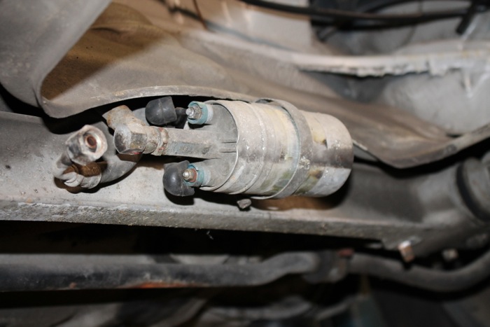 With the tank out, we can disconnect the fuel pump and test it. It appears to be frozen, so we'll put this on our list of things to replace.
