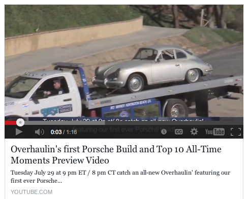This week on Overhaulin' with Chip Foose, they will be fixing up a 1962 356. The show initially airs on Velocity Channel at 9pm on 7/29. The work was done in conjunction with Rod Emory at Emory Motorsports and uses parts from Stoddard.