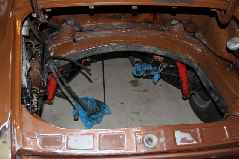 We have been a little remiss in our posting of updates. This was partially because we have been deciding what to do with our little brown Porsche. Sure, we knew we needed to fix the rust around the pedal box and under the fuel tank, but once that was done, there was also the matter of checking on how the inner front fenders looked and making sure there wasn’t anything nasty lurking in that typical 911 problem area.