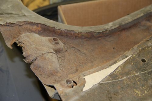 That led us to picking at the gas tank support and noticing some issues. We wound up pulling off the tank support and seeing the problems with our front suspension pan.