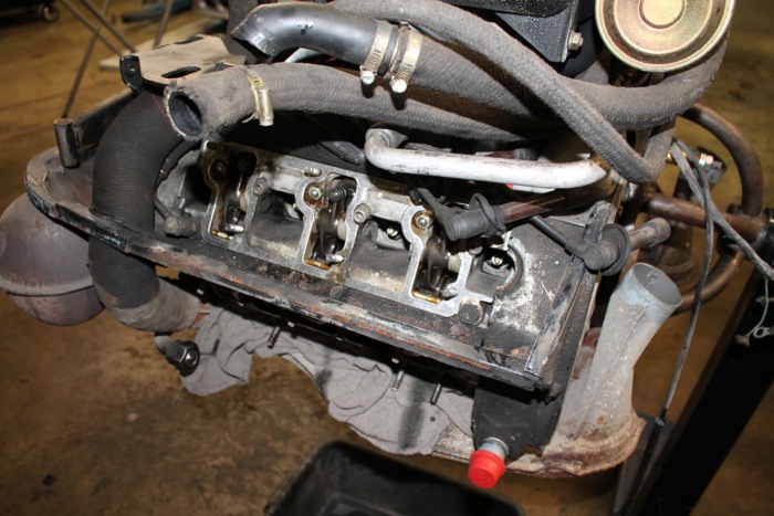 With engine out and on the stand, the valve covers (upper and lower) were pulled off.