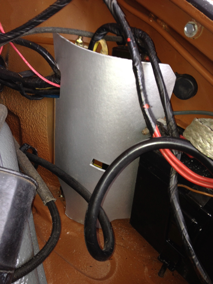 We've started putting together nice details, like a new fiberboard fuse cover for the front trunk area. Our original was eaten by the car's rodent guests—but replacements are easy to get.