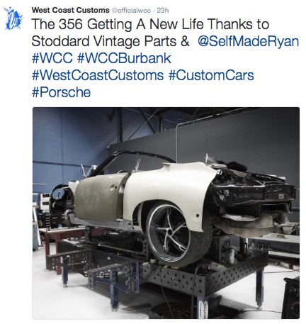 West Coast Customs in California is working on a special 356 project with our help. They're taking a Boxster chassis and reskinning it as a 356. They are using our sheetmetal and trim pieces to make the transformation for Justin Bieber.