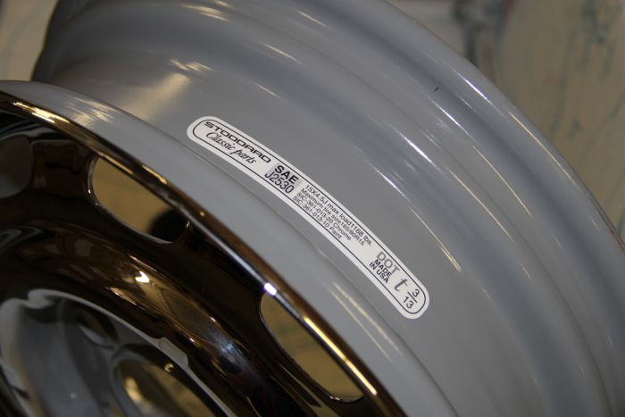 We made the wheels out of modern HSLA (high strength, low alloy) steel that offers more strength and better corrosion resistance than the more traditional carbon steel. The wheels are then either finished in an accurate-to-the-original silver paint or treated to a show-quality chrome plating process.